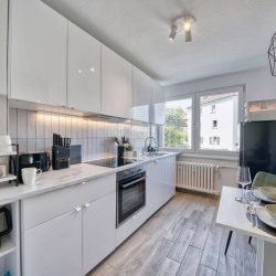 Unsere Wohnung befindet sich direkt neben einem idyllischen Park in ruhiger Nachbarschaft. Ein großer Einkaufskomplex mit diversen Einkaufsläden und Restaurants ist fußläufig (12 Minuten) erreichbar.